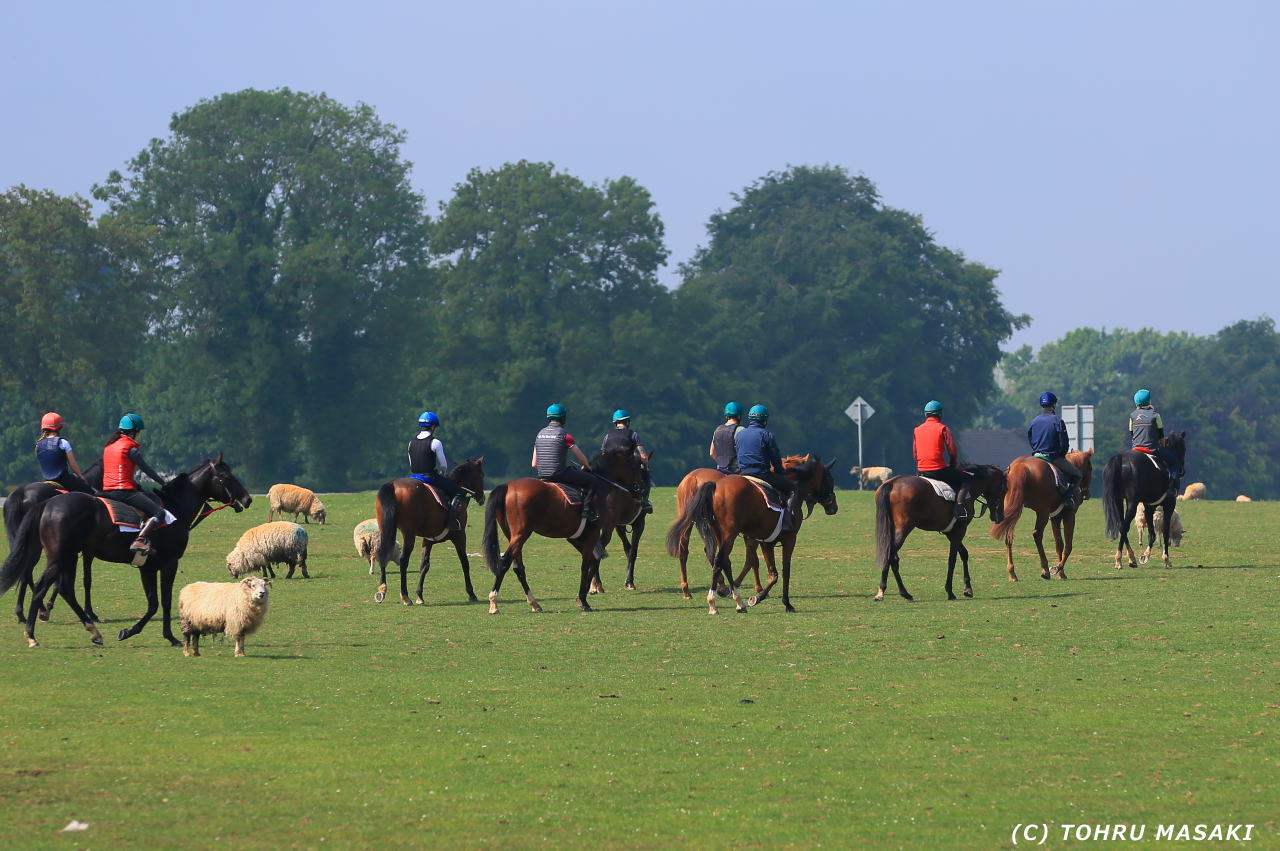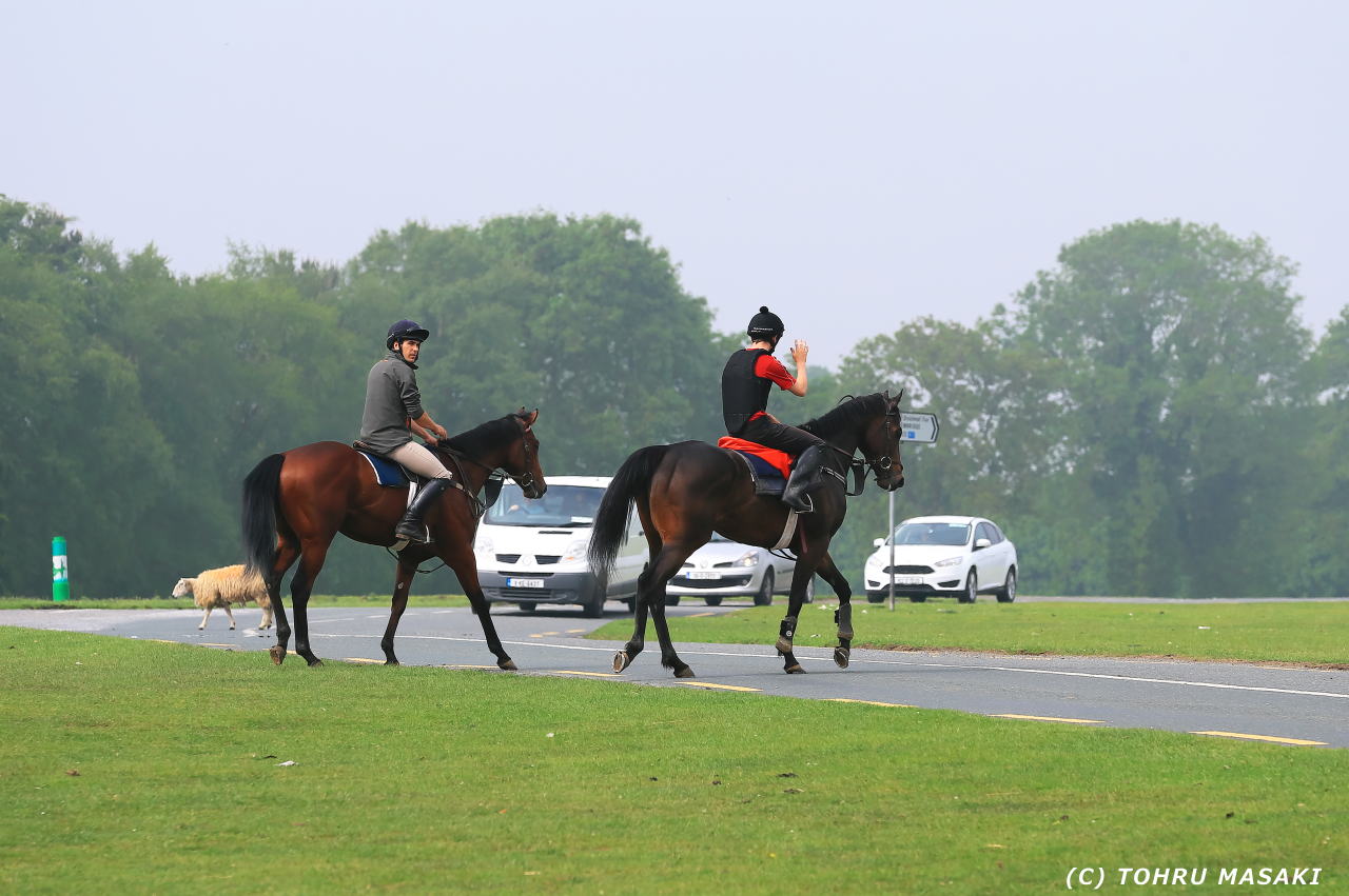サラブレッドも羊さんも車道を渡りますが、もちろん動物優先。車のドライバーさんは微笑みながら待ちます