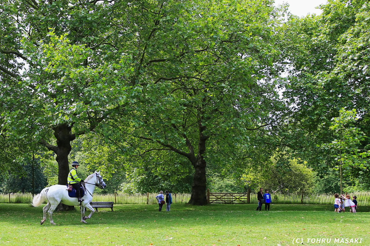 バッキンガム宮殿近くのセントジェームズパークにて。