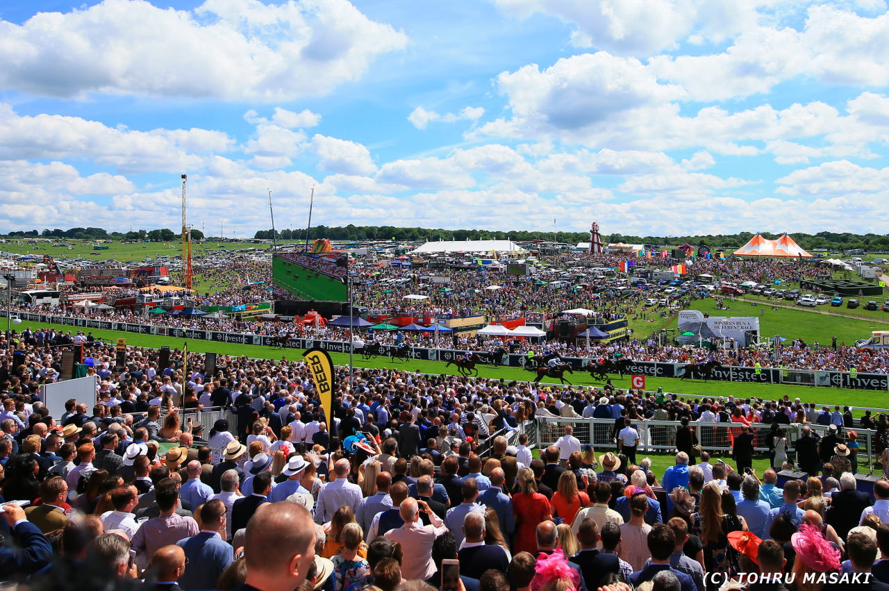 ダービーウイークのエプソム競馬場。全体的な雰囲気としては、ヨーロッパの競馬場の中では日本の競馬場に近いです。