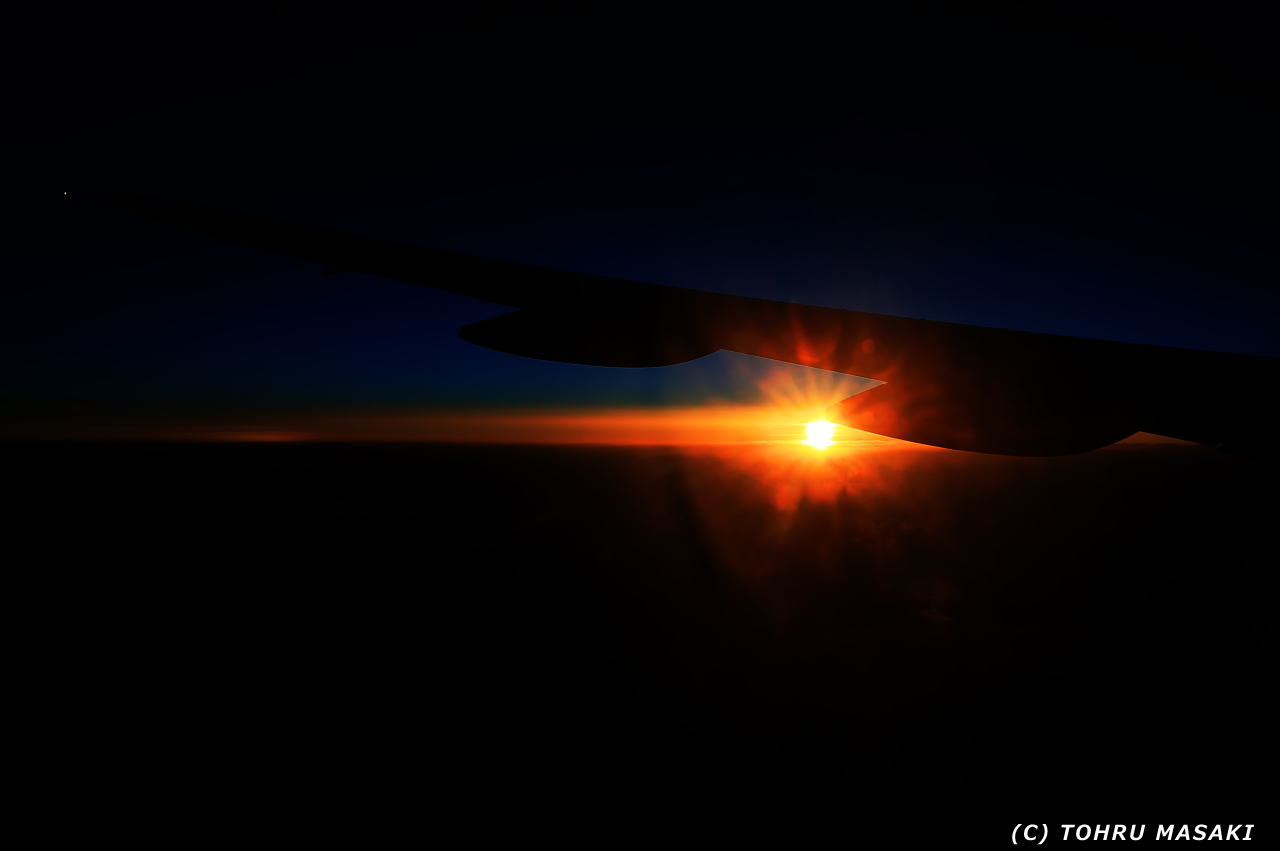 帰路。オーロラは見ることができませんでしたが、朝日が綺麗でした。