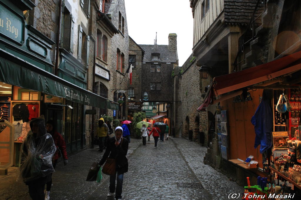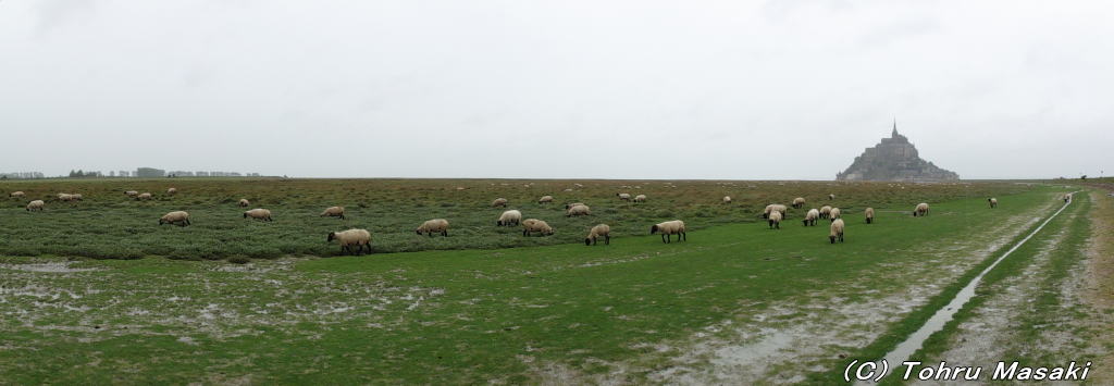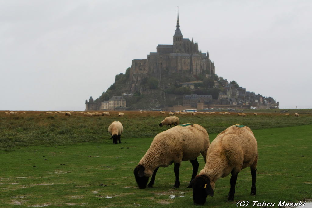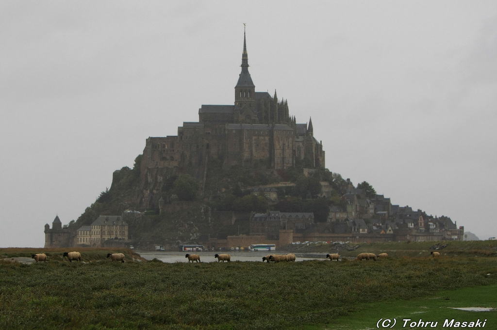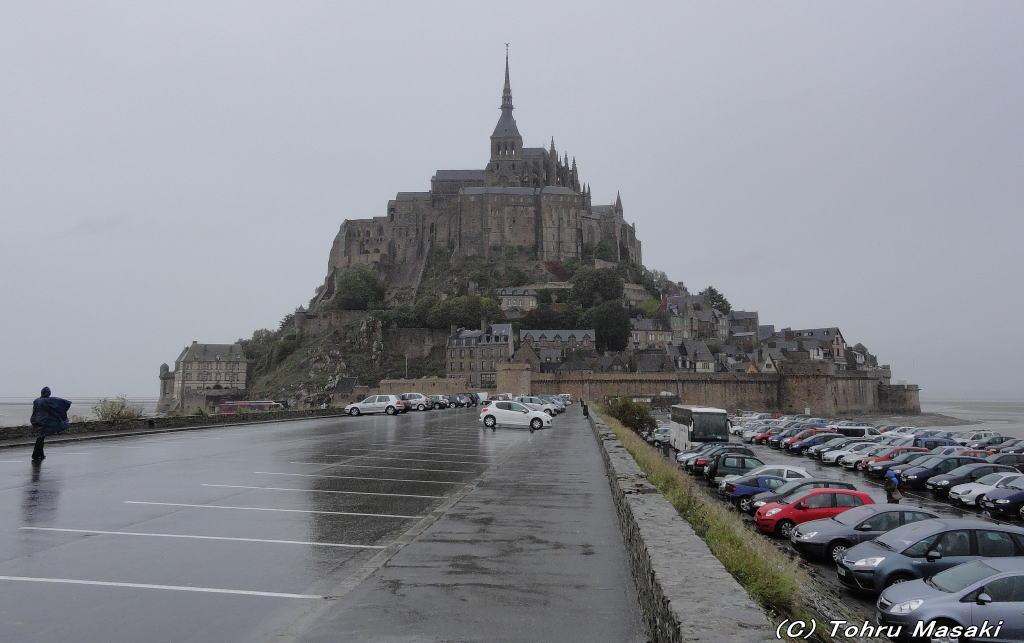 肝心のモンサンミッシェルも雨で霞んでいる。これはこれで雰囲気があるのだが、こんな状態で撮影していたらカメラが壊れそうだ。