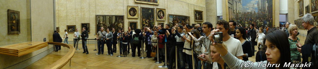 観光客はみなデジカメを取り出し、真剣な表情でこの世界一有名な絵を撮影している。その様子を写しながら、わたしもモナリザをパシャリ。
